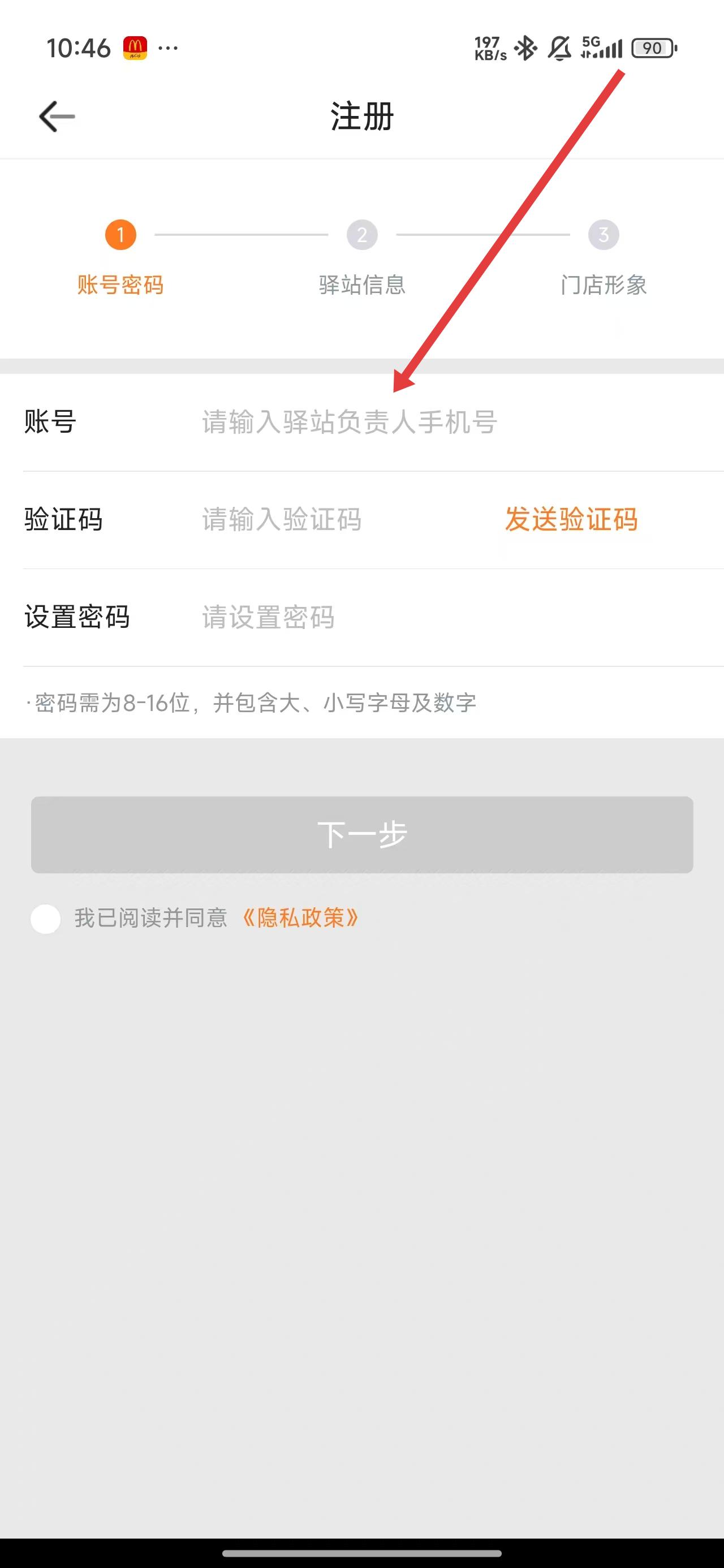 3、在跳轉(zhuǎn)到注冊頁面后,可以在賬號區(qū)域輸入負(fù)責(zé)人手機號,以獲取驗證碼完成注冊。