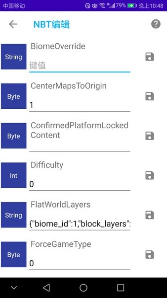 2、內(nèi)置了NBT編輯器,可以修改實體屬性、方塊狀態(tài)等,讓玩家能夠自定義作品中的各種元素;