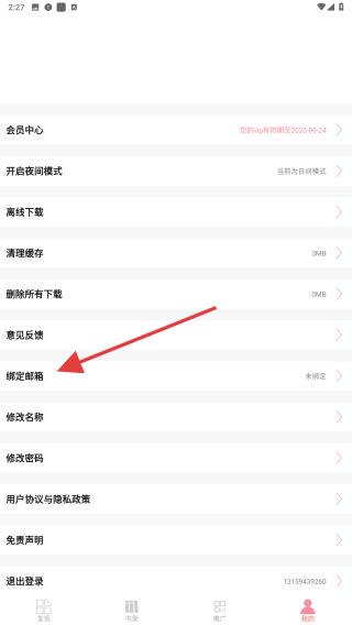 2、在我的頁面內,向下滑動找到并點擊綁定郵箱的功能按鈕。