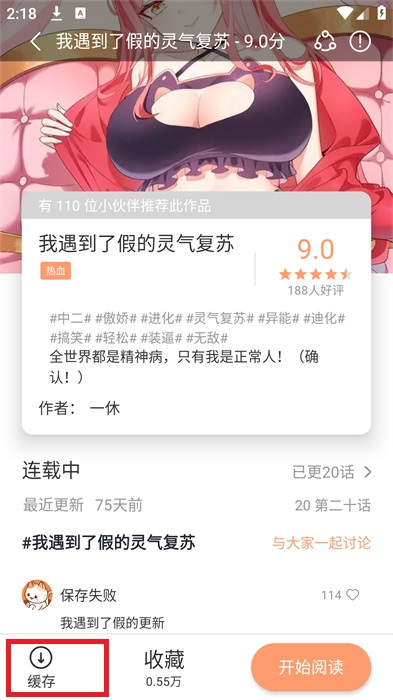 2、在點(diǎn)擊進(jìn)入到漫畫的詳情界面中之后,在軟件的左下角就可以看到【緩存】,點(diǎn)擊進(jìn)入到緩存之中;