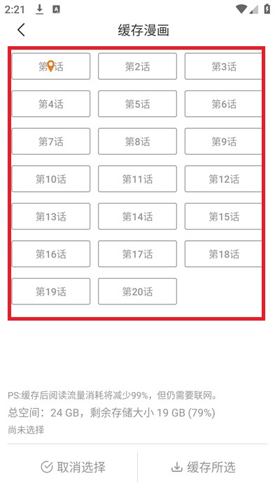 3、緩存的頁面之中,我們需要選擇想要緩存的集數(shù),這樣就可以去進(jìn)行緩存;