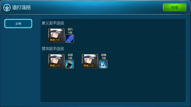 在拖拽忍者到左邊對應(yīng)的位置之后我們能在陣容上放看到這個陣容能夠這個陣容的最大連擊數(shù)。還可以在下面的”追打連擊“中看到連擊的過程。