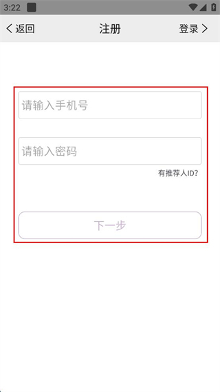 4、在注冊界面,輸入手機(jī)號和密碼,點(diǎn)擊“下一步”按鈕,完成注冊流程。
