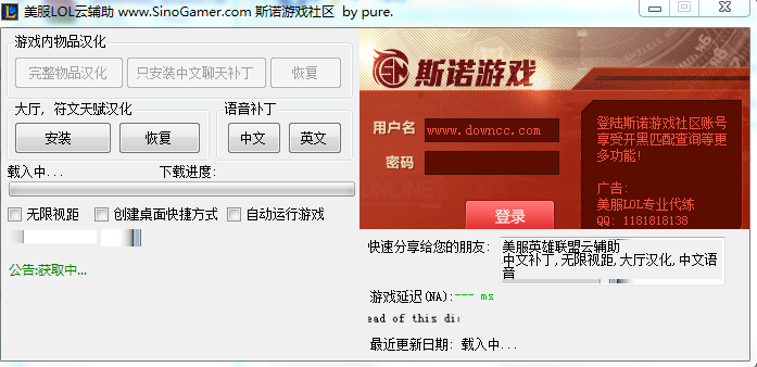lol美服漢化補丁是一款由pure制作的一款lol美服大廳漢化工具,本程序取代原 美服LOL中文補丁, 并在原有基礎(chǔ)上添加更多新功能.所有內(nèi)容均在云服務(wù)器中, 每次游戲更新, 無需重新下載此程序.僅需等到云服務(wù)器更新(一般在游戲更新后24小時內(nèi)), 重新安裝中文補丁, 或重新使用無限視距功能即可.歡迎下載。lol美服漢化補丁 2015 官網(wǎng)最新版