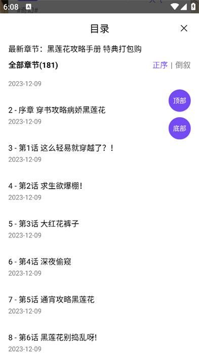 3、還能夠看到漫畫資源內(nèi)容的目錄,可以直接進(jìn)行章節(jié)的切換;