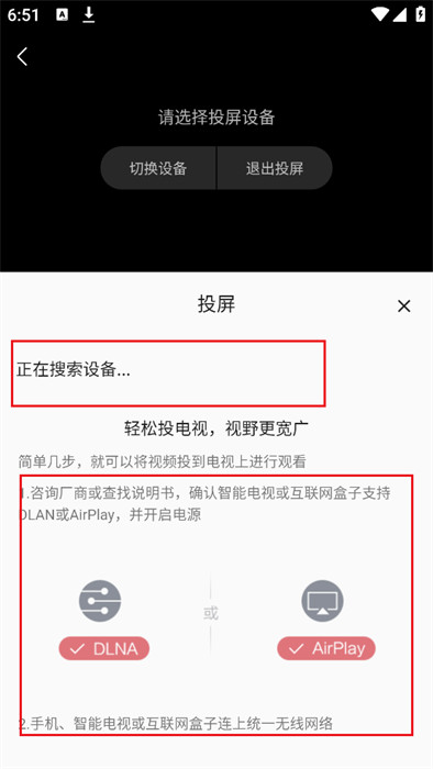 4、最后,在彈出的頁面上,能看到軟件正在搜索設(shè)備,只需要稍等幾秒,就能看到投屏的畫面。
