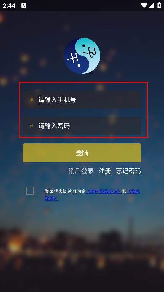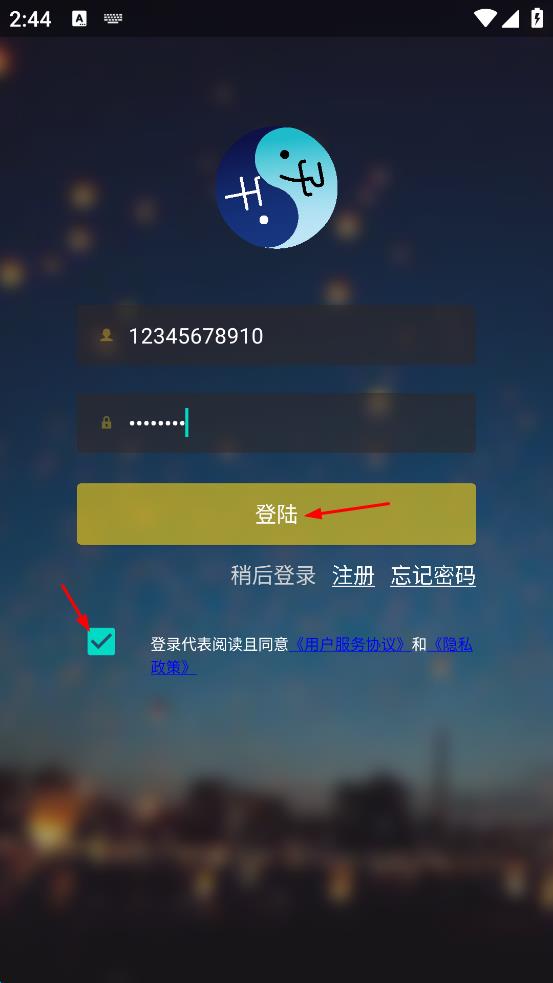 4、勾選登錄代表閱讀且同意用戶服務(wù)協(xié)議和隱私政策,然后點(diǎn)擊下方的“登錄”按鈕,完成登錄操作。