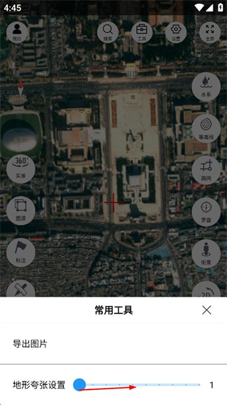 2、在工具菜單中完成地形夸張?jiān)O(shè)置,調(diào)整相關(guān)參數(shù)后關(guān)閉菜單。