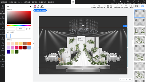 婚禮懶設(shè)計軟件專為婚慶工作相關(guān)人員提供了工作軟件,利用該工具能夠輕松的設(shè)置婚禮舞臺的效果,并在這里能夠進(jìn)行婚慶舞臺的流暢進(jìn)行制作,在這里能夠看到更多有關(guān)婚禮的各種素材內(nèi)容,并且在針對如今的婚慶相關(guān)的信息中,通過不斷的努力和優(yōu)質(zhì)的展現(xiàn)效果,通過該工具能夠一鍵生成各種不同的婚禮成果圖,更加直觀快速的給予新人對于婚禮場景效果能夠快速看到呈現(xiàn)的效果。
