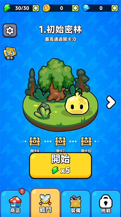 1、下載安裝完成游戲之后,就可以打開游戲,然后進入到游戲界面之中,無需登錄,直接就可以開始玩,在游戲界面點擊【開始】就可以挑戰(zhàn);