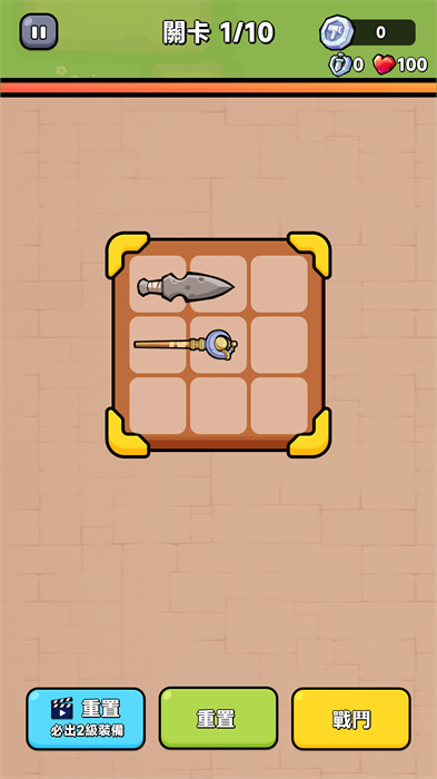 2、在開始戰(zhàn)斗之前,你需要把武器放在背包中,需要合理的放置,才能放下更多的裝備;