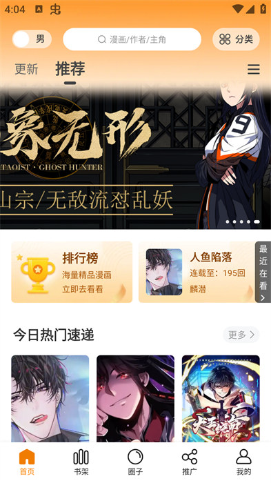 3、點(diǎn)擊排行榜,就可以查看平臺熱門作品,這樣就可以不用找就能夠看到熱門的漫畫作品;