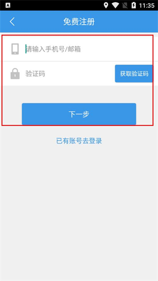 2、在免費(fèi)注冊(cè)頁(yè)面輸入手機(jī)號(hào),填寫(xiě)收到的驗(yàn)證碼,點(diǎn)擊下一步。