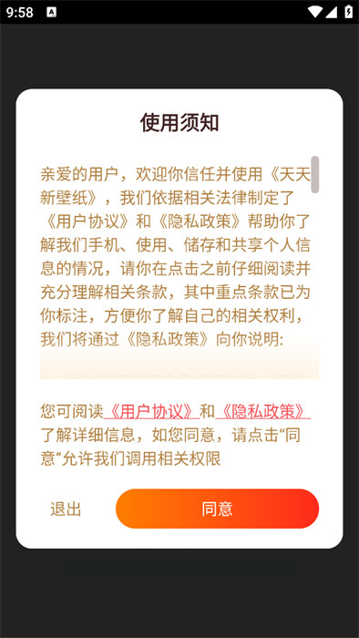 3、打開(kāi)軟件點(diǎn)擊同意之后就能進(jìn)入到軟件里面選擇壁紙資源了;