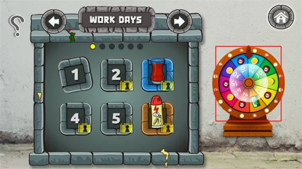 2、進入到關(guān)卡的選擇之前,玩家可以玩一玩屏幕右側(cè)的大轉(zhuǎn)盤,點擊轉(zhuǎn)盤即可進行裝盤游戲,轉(zhuǎn)盤停止時可以獲得對應(yīng)的獎勵品;