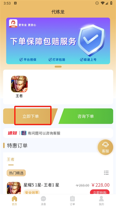 1、進(jìn)入軟件后可以就可以看到如何進(jìn)行下單了,如果決定了可以直接選擇立即下單;