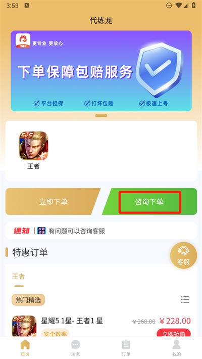 線上可以看到有多個(gè)游戲的訂單選擇,根據(jù)個(gè)人需要選擇不同的訂單;