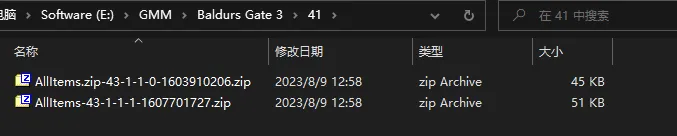 3、如果遇到這個(gè)問(wèn)題需要將壓縮包拖入管理器中,這樣就會(huì)正常自動(dòng)的識(shí)別到mod類型。
