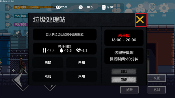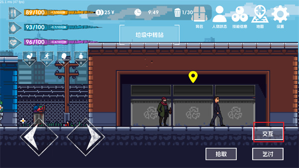 5、還有可能會在場景內(nèi)遇到一些大型的垃圾站,可以點擊【交互】按鈕,來和垃圾站進行交互;