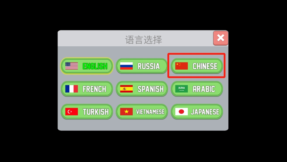 1、我們在進(jìn)入游戲時(shí)就可以更改語言,多種語言可以選擇我們選擇中文;
