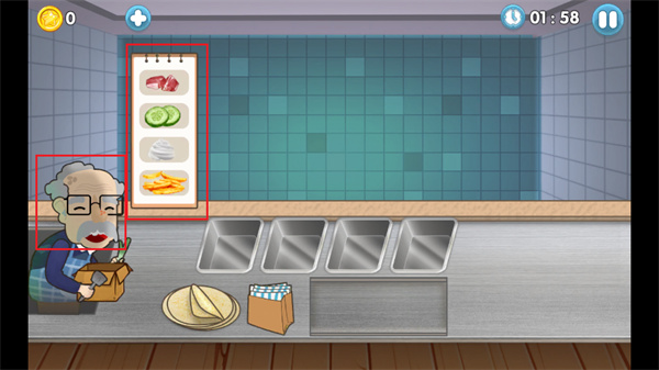 4、加滿之后,可以看顧客頭頂上方的點餐需求,按照這個需求來進行食物的制作;