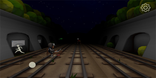 2、一進(jìn)入游戲就會(huì)看到這樣的一個(gè)火車軌道畫面景象,前方黑暗的道路充滿了未知的驚險(xiǎn)時(shí)刻,自由操控自己探索這個(gè)詭異的游戲空間;
