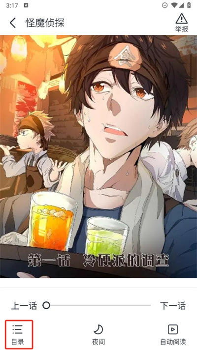 2、點(diǎn)擊進(jìn)入后就能夠直接進(jìn)行觀看,點(diǎn)擊畫面正中間彈出功能彈窗我們可以看到目錄功能;