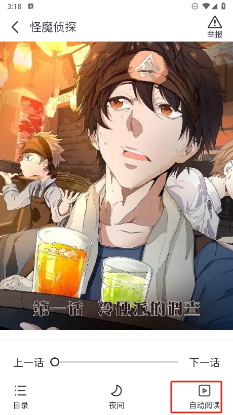4、并且還在觀看上為了能夠放松自己需要手拿的方式,可以點(diǎn)擊自動(dòng)閱讀將會(huì)自動(dòng)滑動(dòng)進(jìn)行觀看。