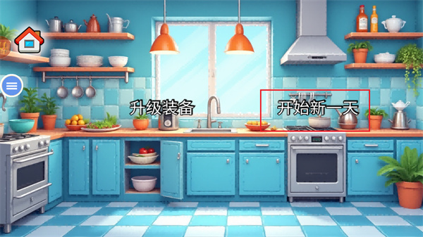 3、此時玩家將有兩種選擇,一種是進行設備的升級,一種是開啟營業(yè),可以點擊【開始新一天】按鈕;