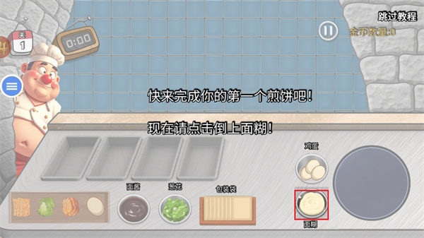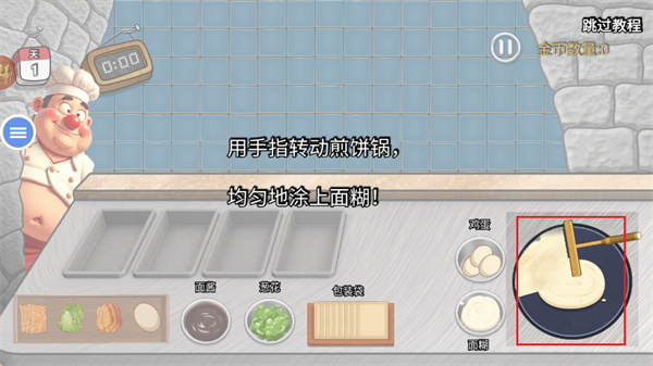 4、此時將會進入到煎餅的制作頁面,可以點擊面糊來進行煎餅的煎制;