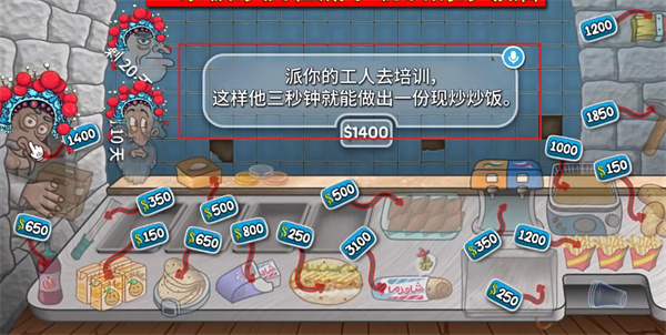 4、進(jìn)入到外賣制作界面之后,玩家將需要解鎖各種不同的美食制作設(shè)備,并領(lǐng)取自己的任務(wù);