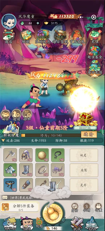 開啟出一個又一個寶藏,寶物的拾取中強(qiáng)化戰(zhàn)斗力,打敗更多的妖怪提升實(shí)力;