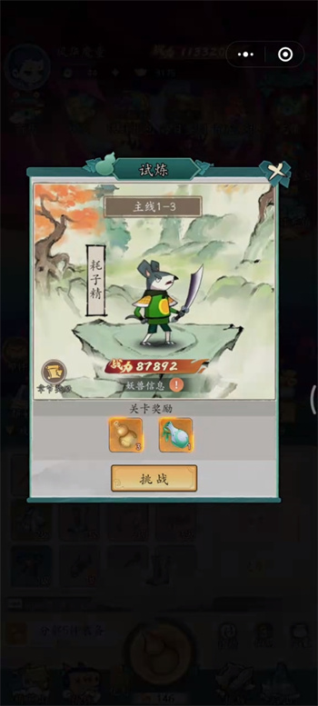 3、進(jìn)入試煉中開啟全新的主線任務(wù),一步步的踏進(jìn)更加險(xiǎn)境的任務(wù)中,點(diǎn)面對妖獸的信息與關(guān)卡獎勵選擇【挑戰(zhàn)】進(jìn)入到戰(zhàn)場之上,施展出自己的進(jìn)攻力;