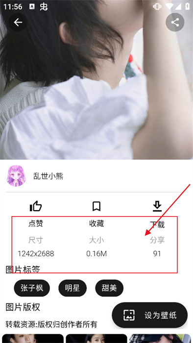 4、最后,返回壁紙的詳情頁,還能查看到當(dāng)前壁紙的尺寸以及類型,隨時都能訂閱標(biāo)簽,并等待壁紙更新。