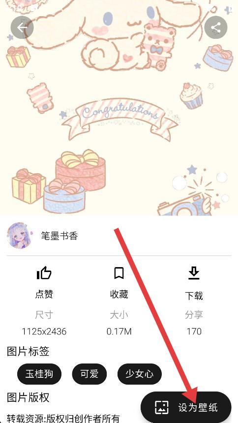 4、點擊右下角的設(shè)為壁紙按鈕,即可成功設(shè)置壁紙。