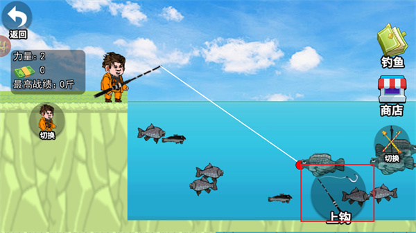 需要快速的進行魚竿的提起,以確保自己的小魚不會逃走,并且能通過小魚來進行金幣獲取;