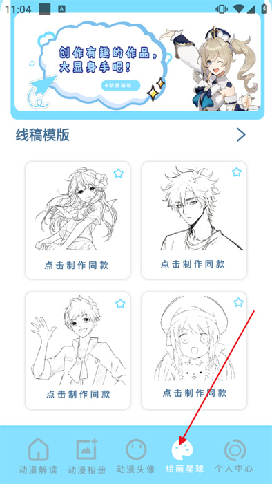 1、將軟件從桌面上打開進(jìn)入,并點(diǎn)擊【繪畫星球】,這里會切換頁面,如下圖;