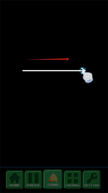 4、根據(jù)指示在屏幕之上滑動(dòng),將剛選擇的元素通過(guò)滑動(dòng)放置在這個(gè)世界之中,炸彈與沙子等元素結(jié)合起來(lái)應(yīng)發(fā)出不可思議的色彩畫面。