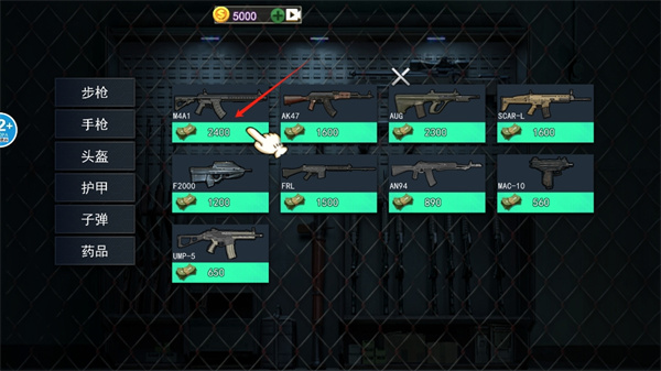 4、進(jìn)入戰(zhàn)場就需要選擇一個(gè)武器的加持才可以生存下去,在有限的資金之下點(diǎn)擊不同武器,各種機(jī)關(guān)槍的選擇,充滿子彈轟擊的火力快感各種各樣的不同突圍戰(zhàn)火局勢。