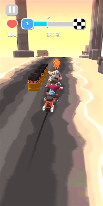 2、來到對手的旁邊,將其直接踹出當(dāng)前的賽道,之上激情的賽車之上分布著各處散落著的障礙物,終點就在前方,勝利在望;