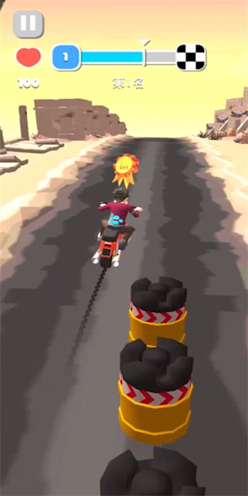 3、相伴在不同的障礙賽道之上,保持自己高速的速度與平衡力,簡單的操控模擬過程,左右點擊滑動當(dāng)前的屏幕,操控摩托車靈活躲避障礙;