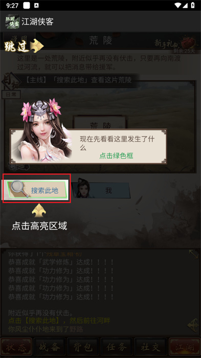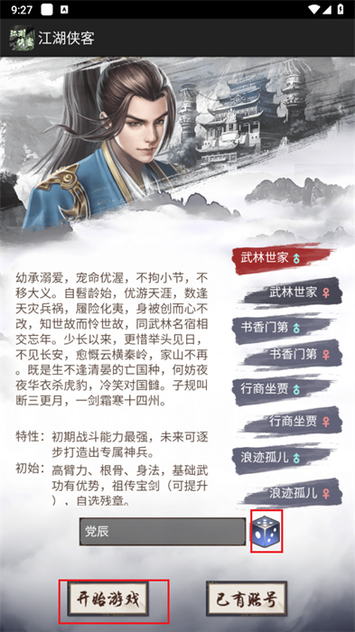 1、點(diǎn)擊屏幕之中的【開(kāi)始游戲】按鈕,以正式的進(jìn)入到文字武俠的世界;