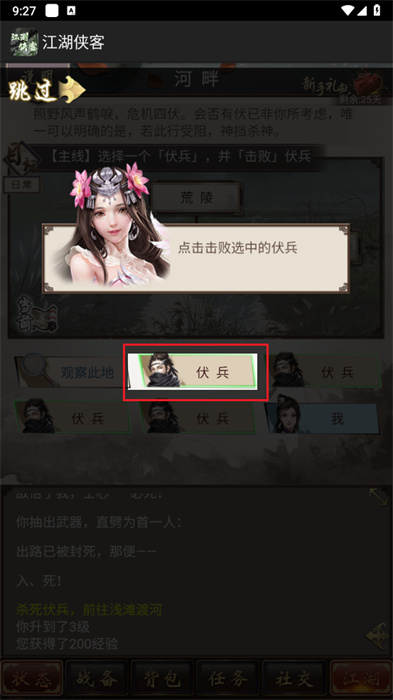 6、還需要進(jìn)行伏兵的擊敗,可以點(diǎn)擊【伏兵】按鈕以進(jìn)行伏兵的打擊。