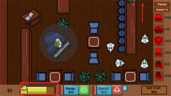 5、未被殺死的老鼠進入到后廚之后,玩家的芝士塊將會被吃掉,數(shù)量將會變少,這會影響玩家的策略節(jié)奏。