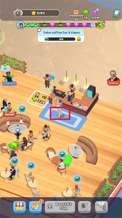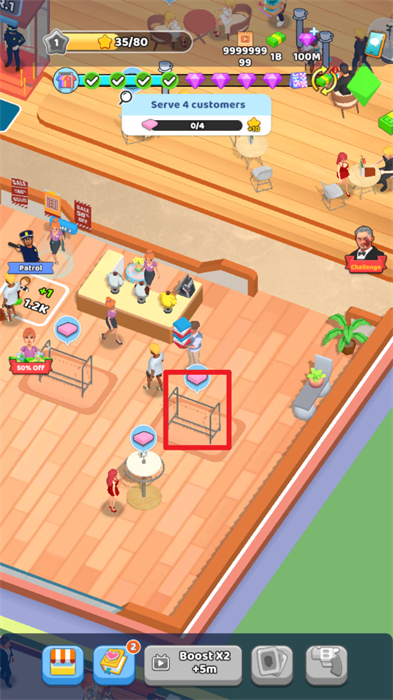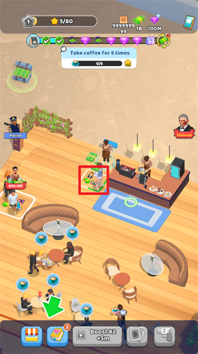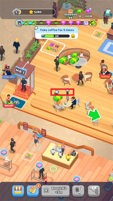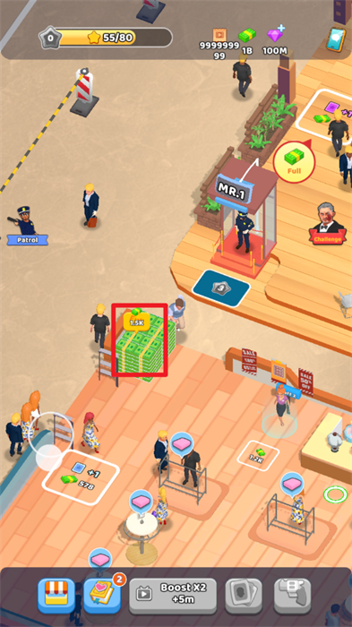 3、還可以快速的進行場景內(nèi)一些商店設(shè)施的升級,只需要站在需要被升級的地塊之上即可進行紙幣的支出;