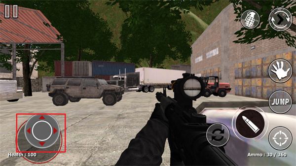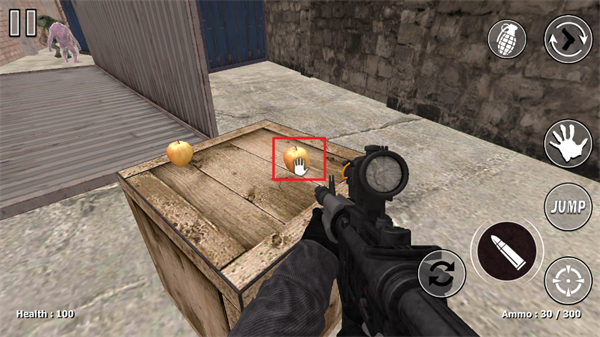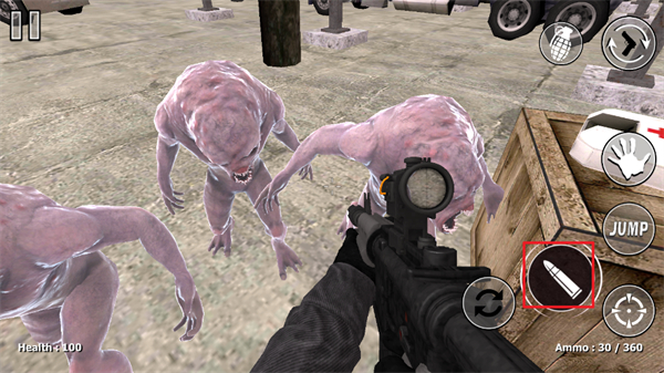 4、使用自己手中的槍支來進行怪物們的瞄準,使得這些怪物能夠順利的被就是殺死,射擊按鈕是屏幕右下角紅色框框內(nèi)的按鈕;