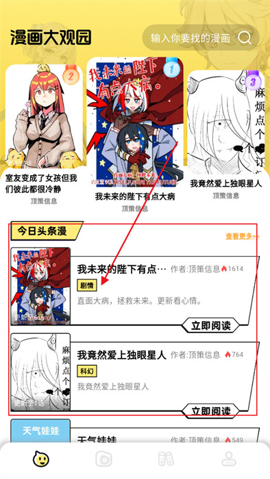 3、緊接著,進入到首頁可看到很多熱門的漫畫,全部都進行了整理,點擊一本進入其中;