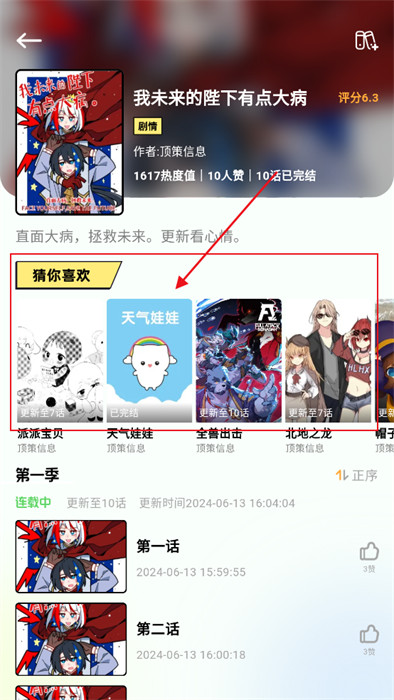 4、在詳情頁內(nèi)還可以看到很多和書本類似的漫畫,在閱讀之后可點擊進入瀏覽;