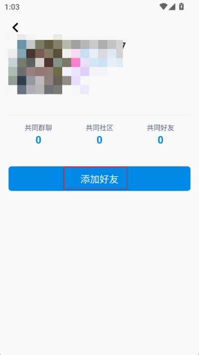 4、點(diǎn)擊后進(jìn)入對(duì)方的信息界面位置,在這里可以查看與對(duì)方的共同群聊、共同社區(qū)和共同好友,點(diǎn)擊下方的【添加好友】選項(xiàng)即可成功添加對(duì)方好友。