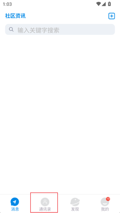 1、首先打開(kāi)下載好的魅信APP,進(jìn)入軟件后點(diǎn)擊界面下方的【通訊錄】選項(xiàng);